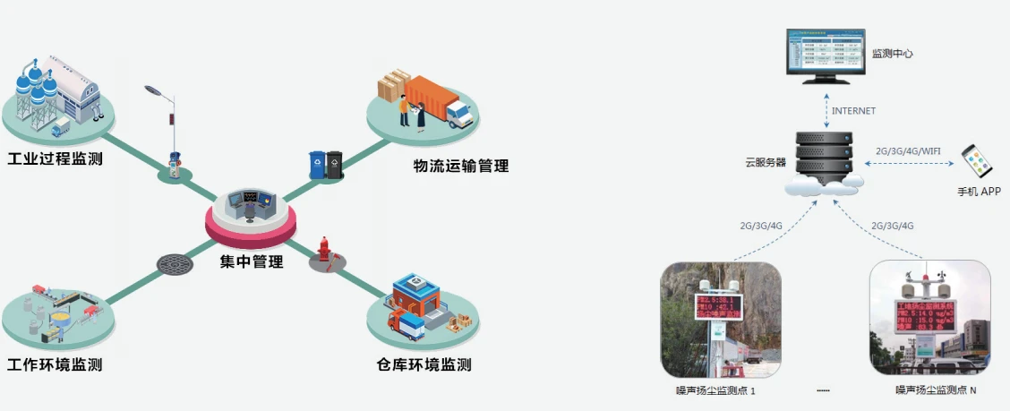 可将数据信息传输至的环境监测网,实现数据的远程传输和控制,并设定参数;可无缝对接各地监管平台。
